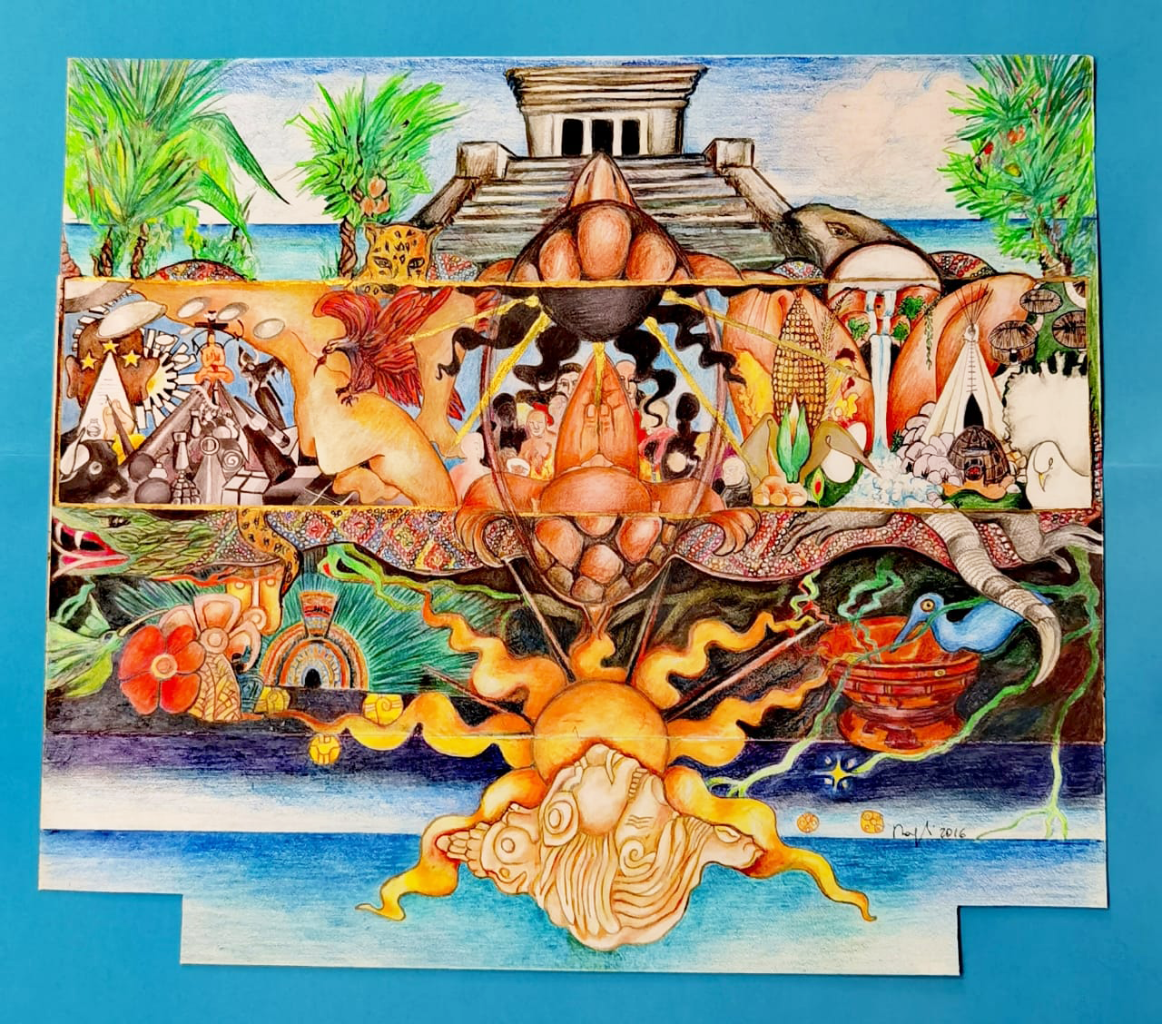 Sin embargo, como a veces sucede, hubo cambio de planes. La junta política de Tulum iba a cambiar en unos cuantos meses y no era conveniente presentar el proyecto antes de que entrara la nueva. También era oportuno hablar con el secretario de turismo del estado para confirmar la posibilidad de llevar a cabo el mural, tratándose de un proyecto de al menos un año de tiempo, con tres o cuatro personas trabajando tiempo completo. Y otra circunstancia, la de un incendio el 2 de Noviembre 2016, Día de Muertos, a las 7 de la mañana, que destruyó la mitad de la planta alta en Cancún con todo lo que allí estaba: la mayor parte de sus trabajos de pintura ya terminados, fotos de los cuadros y más de doscientos dibujos que pensaba fotografiar para añadir al catálogo de su flamante página web: la tortuga por fin sacaba su cabeza del caparazón. El 2 de noviembre 8 toneladas de escombros salieron de su casa. Y ella, milagrosamente viva.