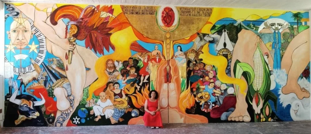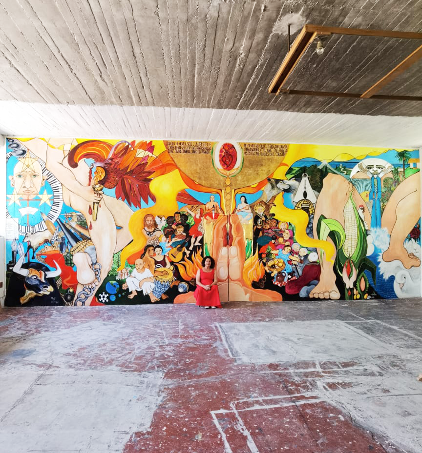 2017 – 2024 – Sin embargo, aquel mismo enero 2017 hubo cambio de planes. En lugar de la obra inconclusa y destruida en parte por el incendio de corte pesimista sobre el rumbo que estaba tomando el mundo a partir del choque de aviones en contra de las dos torres gemelas de Nueva York, se me ocurrió pintar una gran esperanza. Post tercera guerra mundial, o post locura colectiva ejemplificada en el nuevo posible orden mundial, o post año 2012, año en el cual supuestamente se iba a acabar el mundo pero que los antiguos mayas habían definido como el final de un ciclo de 5125 años, o Baktún, en donde todas nuestras certezas se iban a caer inexorablemente en el caos creador para comenzar un nuevo baktún con nuevas características; de aquel crisol revelador surgiría una nueva era para la humanidad, con nuevos valores válidos durante otros 5125 años, de ser que sobreviviéramos a posibles catástrofes naturales o a nuestro espíritu autodestructivo siempre al acecho.